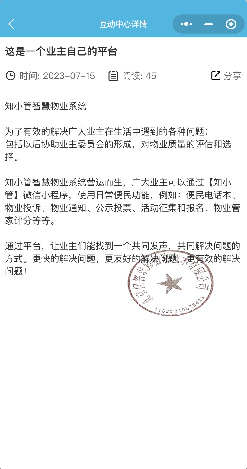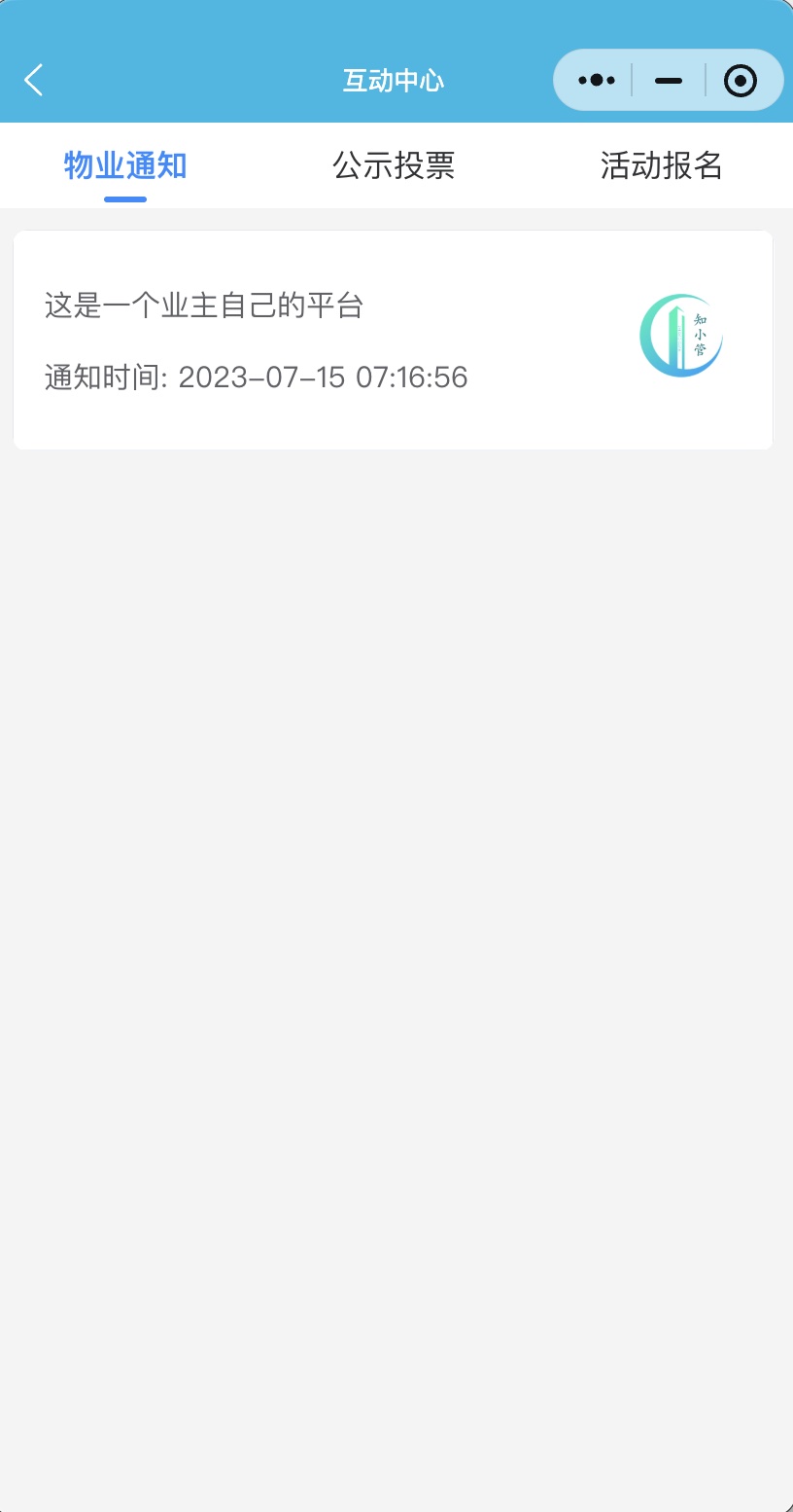 基于这个原因,我们创造了知小管平台,物业可以发布自己的日常服务(让业主更了解),对小区建设进行投票(重在参与),发布物业通知(信息触达更及时)。